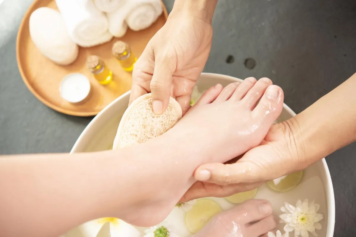 A menudo se exfolian las manos y los pies para eliminar las células muertas, seguido de un tratamiento hidratante para dejar la piel suave e hidratada. Esto puede incluir exfoliantes, mascarillas y masajes.